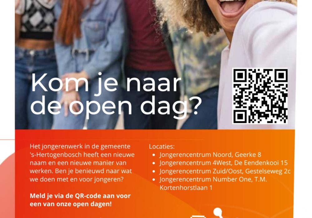 Het jongerenwerk in de gemeente ‘s-Hertogenbosch heeft een nieuwe naam en een nieuwe manier van werken. Ben je benieuwd naar wat we doen met en voor jongeren? Meld je dan via de QR-code aan voor één van onze open dagen!
